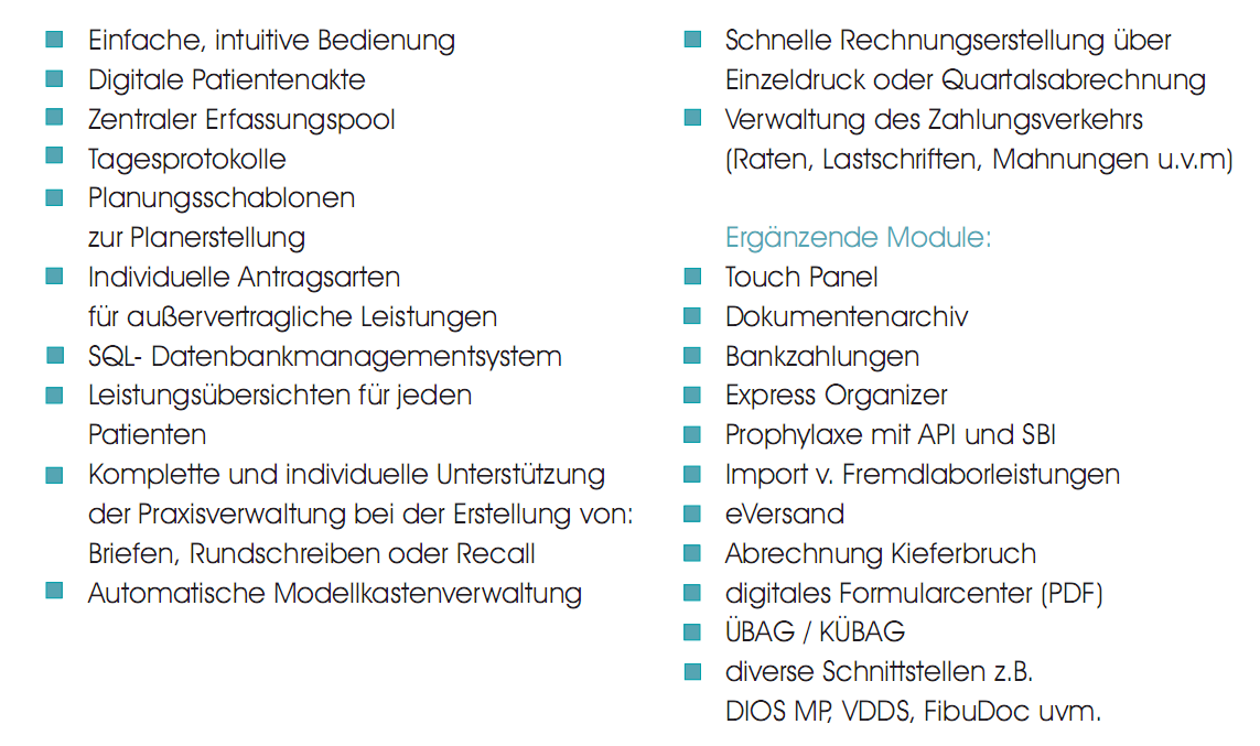 ortho Express kann mit verschiedenen Modulen ergänzt werden, z. B.